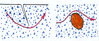 當介質中出現(xiàn)聲阻抗差異較大的障礙物和裂縫,空洞及低聲阻抗的異物時聲波會發(fā)生繞射現(xiàn)象